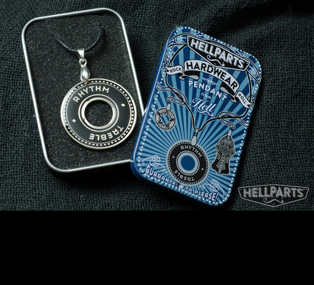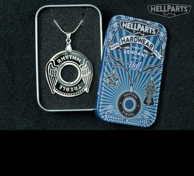 Why should your guitar have all the fun?! Now you can mod... yourself! We have turned our hardware into distinct, "hardwear" and packaged them in an attractive slide-top tin. All of our washers and truss rod covers are available as pendants so if you do not see what you want here, just drop us a line and let us know your preference and we'll take care of you. The perfect gift for that hard-rocking someone special...